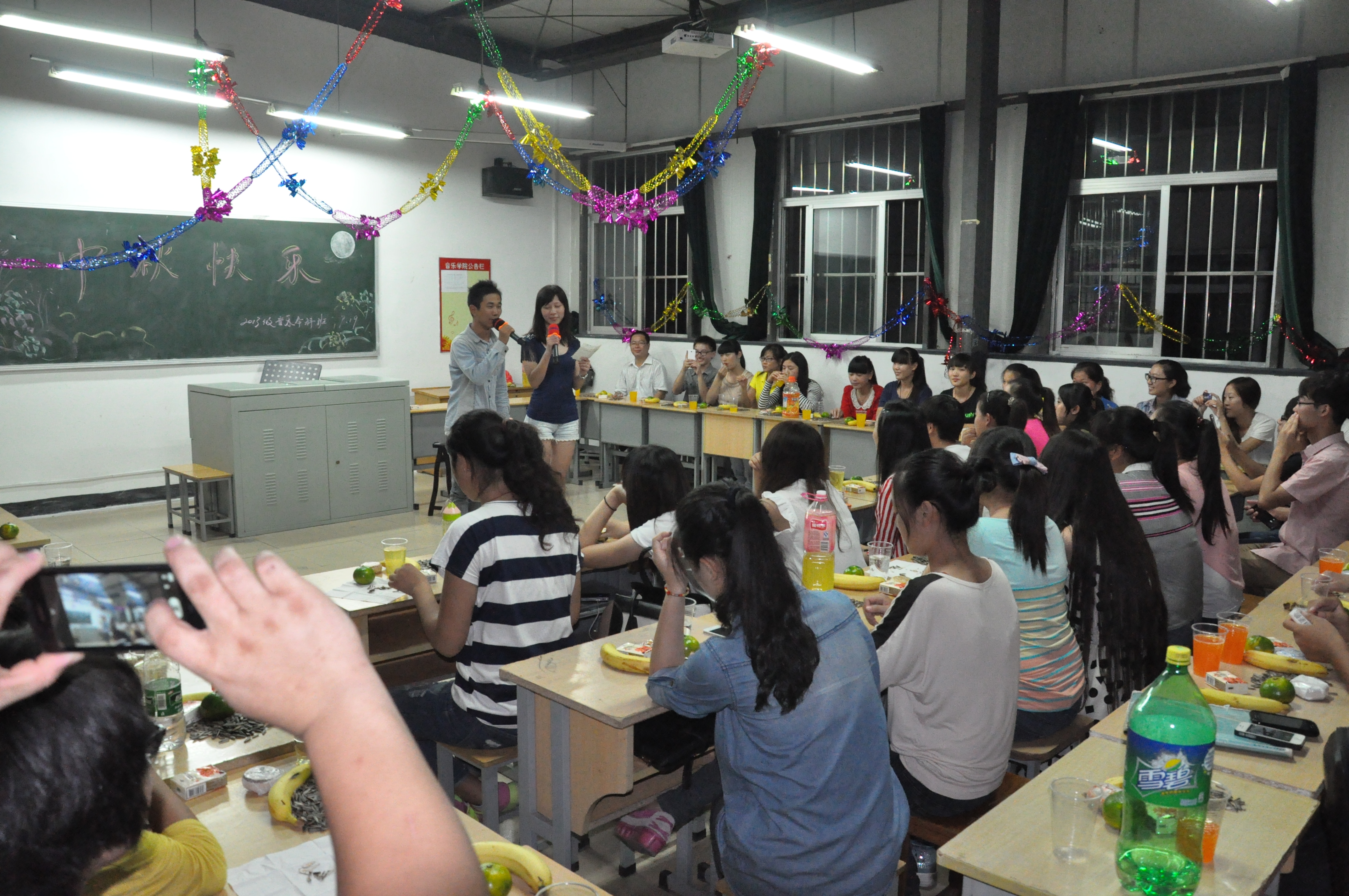 秋色邈邈,云海澹澹。金风送爽,丹桂飘香。悠扬的二胡曲《良宵》拉开了晚会序幕。同学们争相上场:古筝合奏《草原英雄小姐妹》,女声独唱《我可以抱你吗》、《我怀念的》、《Fearless》,男生独唱《你是我的眼》、《我原以为》、舞蹈《紫竹林》、B-BOX、古筝独奏《林冲奔夜》。间以活泼有趣的游戏,晚会气氛热烈。