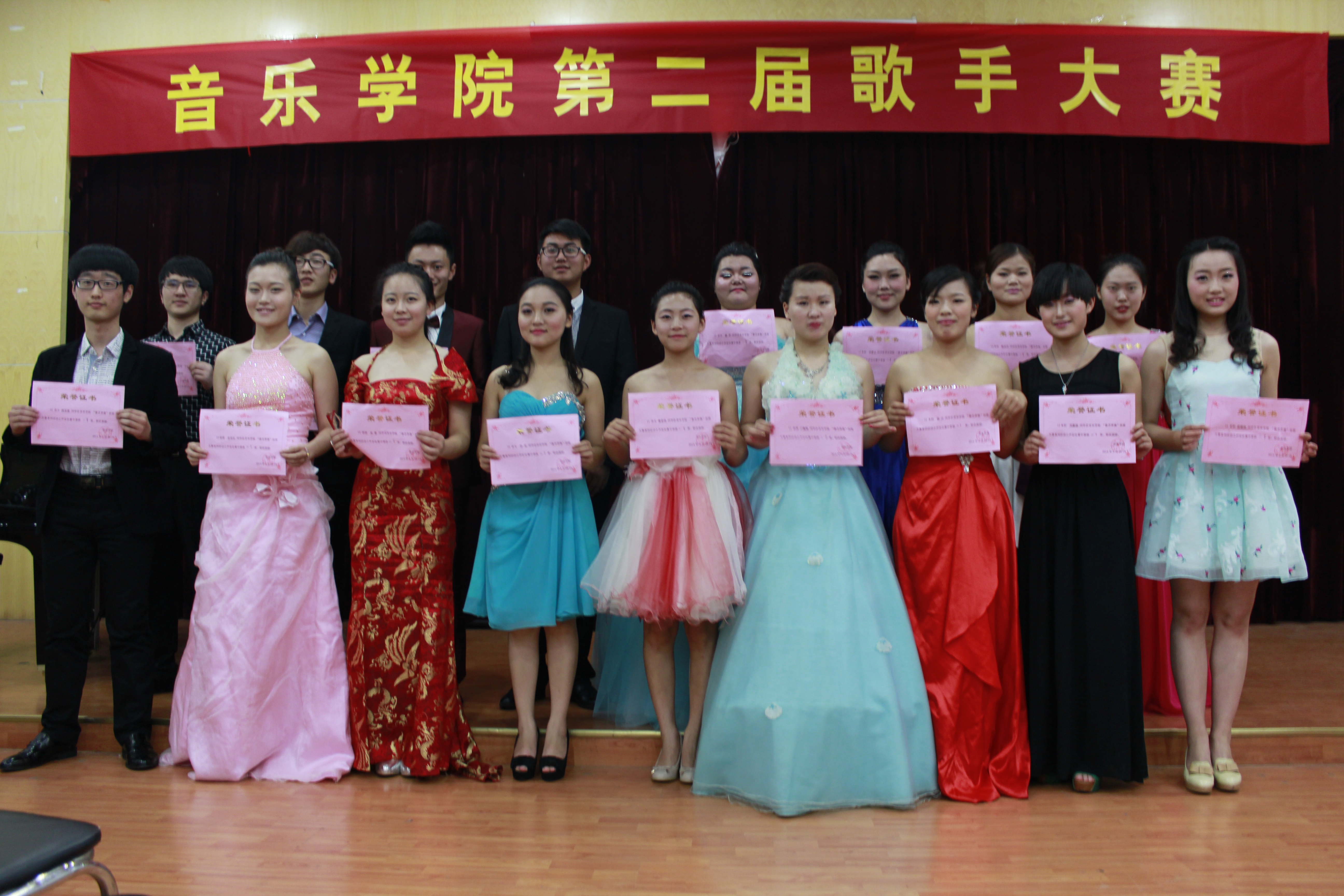 经过预赛选拔出的19名选手在决赛阶段向全院师生展示了他们良好的专业水平。一等奖获得者13表演班李越演唱的《峨眉酒家》,以他那极具独特的音色,高超的技巧,把这首民族风格的创作作品表现的近乎完美。一等奖获得者施洁用她那金属般的嗓音情真意切的演绎了《断桥遗梦》,打动了全场。梅诗雨的一首《彝家小阿妹》,歌声与形象完美结合,恰到好处,令人耳目一新。