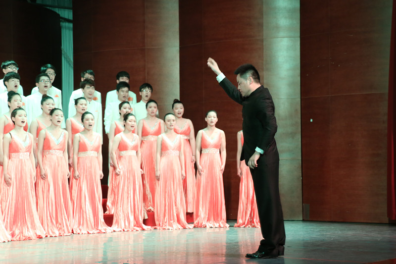从4月中旬起,合唱团就开始利用业余时间进行排练。陈伟老师带领所有队员克服困难,认真训练。期间,校领导多次到小剧场看望合唱队员,指导合唱排练工作,有效地提振了合唱队员的精气神。