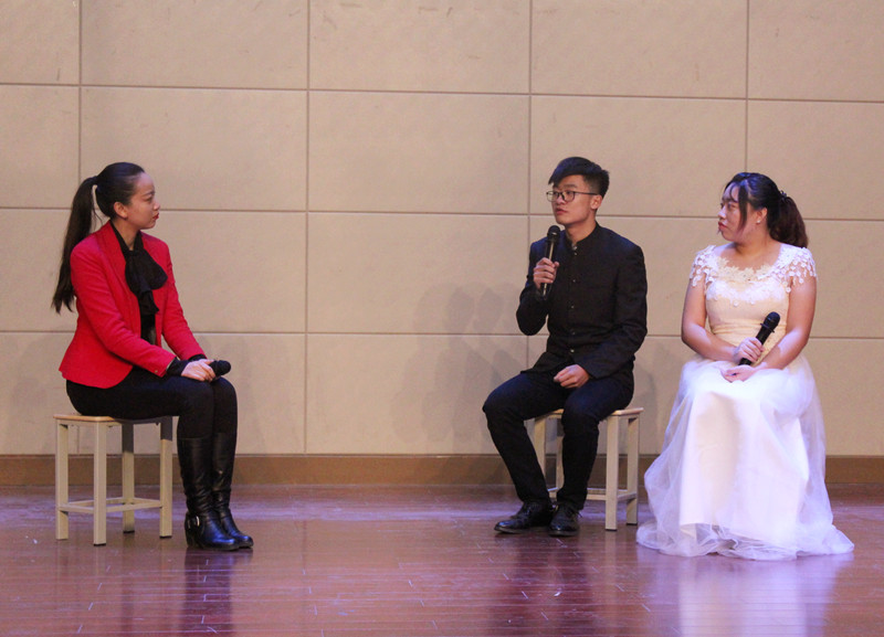 交流会由朱捷老师设计策划,以访谈和专业展示两部分组成,9位老生代表和新生们分享了他们的青春故事以及在学习过程中的酸甜苦辣,并分别表演了形式多样的节目。老生们朴实的语言和精彩的表演交相辉映,新生们羡慕的眼神中流露出了对未来的向往和追求。