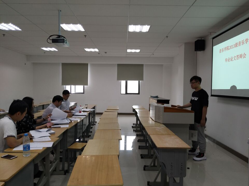参加本届毕业论文答辩的是2013级音乐学专业61名毕业生,论文答辩分两个小组同时进行。答辩流程分为员工陈述、答辩小组提问、员工答辩、成绩评定等环节。在答辩现场,针对答辩老师提出的问题,同学们思维敏捷,思路清晰,回答问题准确深入。各组答辩教师以认真、严谨的态度,系统考查了毕业生对专业知识掌握的熟练程度,并对同学们的回答情况予以认真点评,在指出文章亮点与不足的同时,对员工毕业论文提出了进一步修改的意见建议。