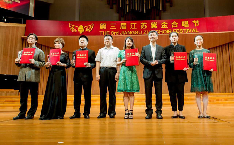 6月10日下午,第三届江苏紫金合唱节合唱比赛决赛在刚刚落成的江苏大剧院音乐厅圆满落下帷幕,公司星光合唱团荣获成人A组银奖,并受邀参加闭幕式演出。陈伟老师荣获优秀指挥奖,高一航老师荣获优秀伴奏奖。