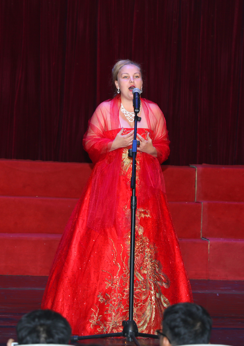 音乐会在张美琪老师演奏的《肖邦a小调练习曲》中拉开帷幕,姚尉、希玛、茅华梅、张思艳、朱艳老师分别为大家献上《多么快乐的一天》、《加沃特舞曲》、《思儿》、《为艺术,为爱情》、《我将去远方》等中外歌剧咏叹调,展示出高超的作品驾驭能力与精湛的艺术技巧;周振惠老师演唱的艺术歌曲《七月的草原》充满诗情画意,让人回味无穷;沈华老师的二胡独奏《今日俄罗斯随想曲》,中西合璧,旋律流畅,充分展现出俄罗斯的迷人风情;熊颖、许蕴璋的古筝与钢琴协奏曲《五陵吟》,则把听众带入悠远的历史长河;刁冠南老师的钢琴独奏《李斯特练习曲“叹息”》是李斯特钢琴经典之作,展示出高妙的钢琴演奏技巧;此外还有王雪澄、高菲菲、许蕴璋老师的小提琴、手风琴、钢琴三重奏《一步之遥》,任思源老师的独唱《琼斯夫人》等。公司青年教师对作品的精彩演绎与二度创作,将一首首艺术作品完美呈现于观众面前,为全院师生带来了一场高雅的视听盛宴,赢得现场观众的满堂喝彩。
