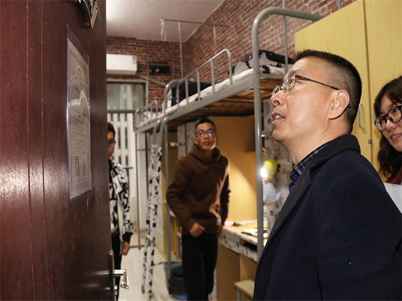 学工处、保卫处、高教后勤等相关部门负责人和部分辅导员陪同检查。(员工工作处黄震)