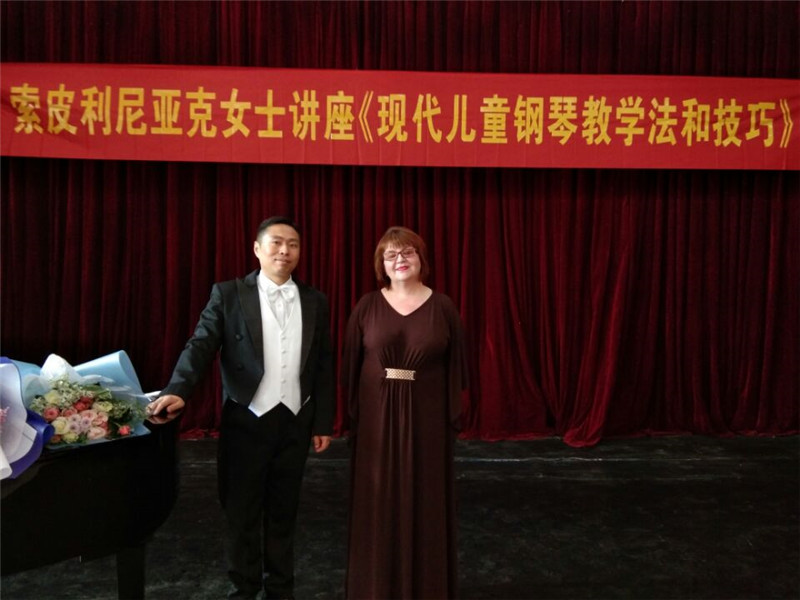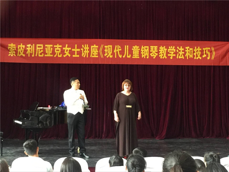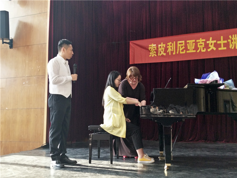 5月2日下午四点在艺术楼2120,我们邀请了俄罗斯克拉斯诺达尔州市立布留霍维茨卡亚镇儿童艺术公司高级教师,钢琴演奏和教学专业硕士索皮利尼亚克女士为公司师生开课。索皮利尼亚克女士进行了一场不同的讲授。公司领导班子以及各位老师同学出席本次活动。