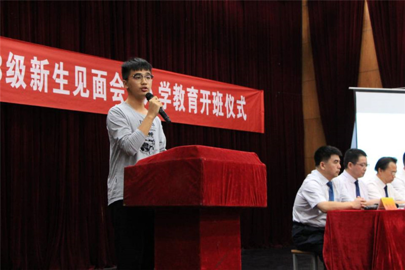 奏唱国歌后,李绍瑞、陆星宏代表新生发言,他们对大学充满了期待,期待更高层次的知识,期待相对轻松的氛围,期待缤纷多彩的活动。员工会副主席的谷晨露代表老生发言,鼓励新生多参加活动,多修炼专业。王宇代表新班主任发言时表示将以敬业务实的工作精神开拓进取,用新鲜的活水浇灌每一颗求知的心灵。