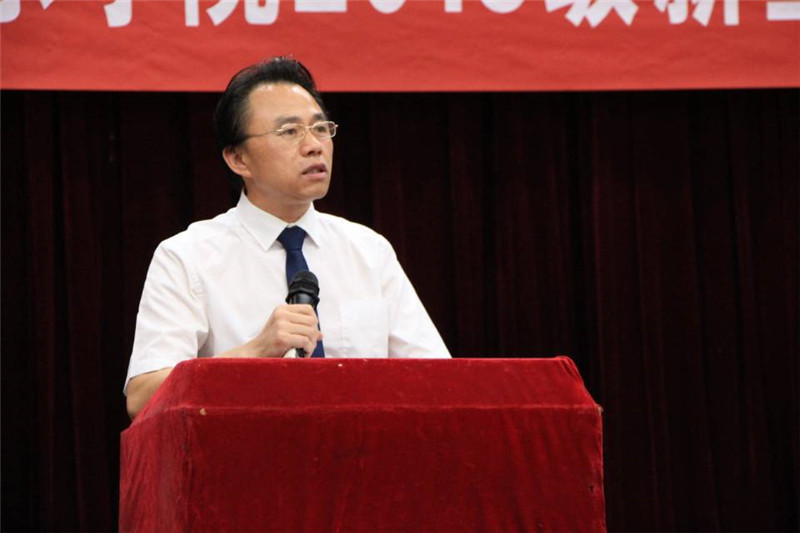 李忠明要求新生们一是怀有报国之心,行有报国之举。二是有上进心、树立奋斗目标、鼓舞前进动力、挥洒辛勤汗水。三是要有包容心。