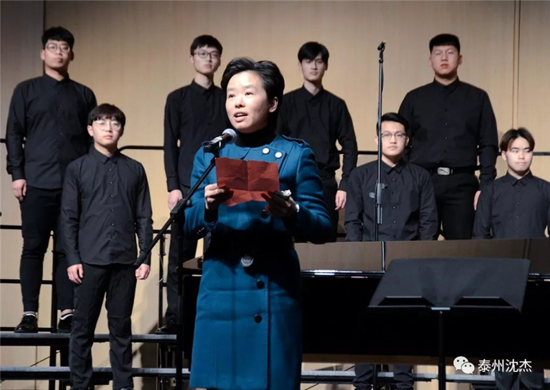 江苏省音乐家协会合唱联盟副主席苏永进在演出前宣读了江苏省音乐家协会合唱联盟的贺信。经理张承龙担任音乐会主持。中国合唱协会副理事长、中国高校合唱委员会主席、著名指挥家任宝平教授,作曲家周国歧,来自全国各地的音乐家、省内其他高校的合唱指挥老师,以及泰州的千余名音乐爱好者共同欣赏了本场音乐会。