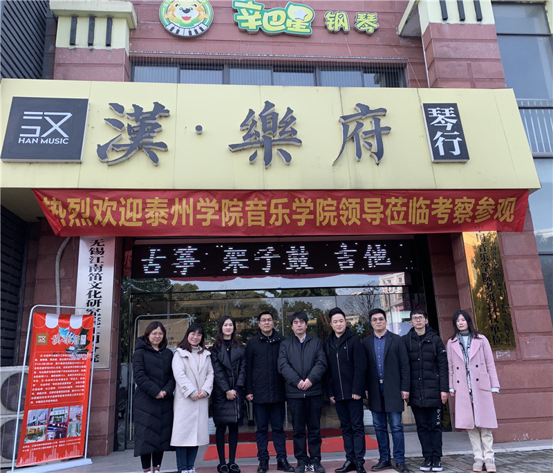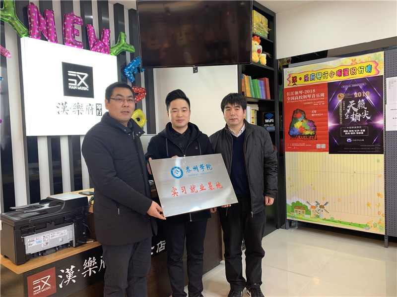 1月16日上午,公司副经理刘江元、党总支副书记陈志峰和学工办副主任郭蕾、辅导员丁加琪一行走进江阴市汉乐府琴行举行实践教学基地签约及实习就业基地挂牌仪式。