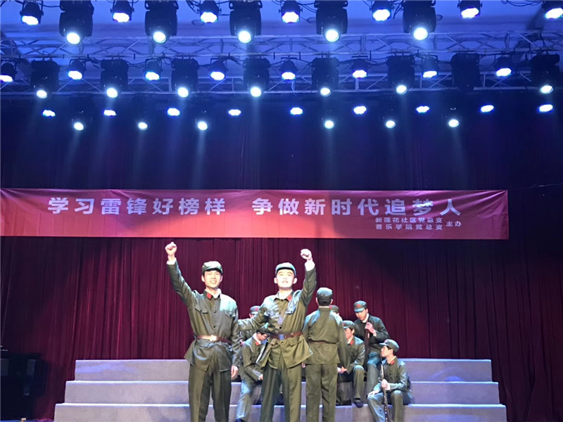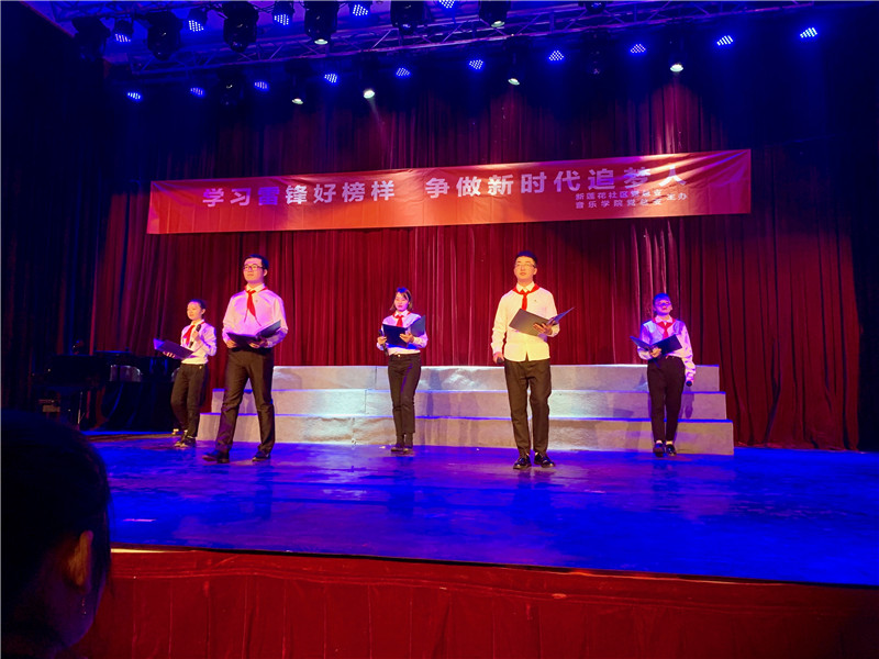 为积极参与和推动公司艺术校园建设,积极利用自身专业特长参与志愿服务,弘扬青春正能量,2019年3月4日晚七点,在艺术楼2120举行了由公司党总支和新莲花社区党总支共同主办,17音乐师范1.2班承办的“学习雷锋好榜样,争做时代追梦人”的主题团日活动。城南街道党工委副书记、人大工委主任殷恒林、新莲花社区党总支书记、居委会主任李银宝、公司党总支李中明书记、陈志峰副书记,以及来自新莲花社区的60名党员代表、bevictor伟德官网的青年志愿者代表、员工代表们观看了此次演出。