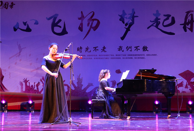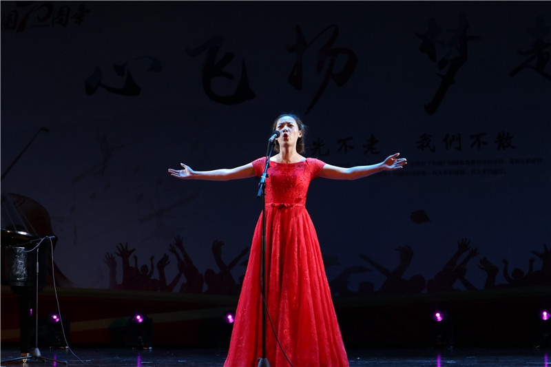 时光不老我们不散,晚会在开场舞《祖国你好》中拉开序幕,古筝独奏天山之歌,此曲只应天上有,在观众面前呈现的不是舞台,是宛如从敦煌走出的天女,是火焰山的崎岖,是玄奘西天取经路程的艰险;小合唱《老师我想你》的深情;朗诵《青春,中国》的激情;女子群舞《金陵十三钗》和《汉洛.颜子兮》民国与汉朝舞蹈的碰撞,更是不一样的风韵;男声独唱《长征选段 平伢子咏叹调》的对革命的忠贞,对胜利的向往;器乐合奏《权御天下》燃动全场……最后,晚会以15级全体同学合唱《你我》缓缓落下帷幕。