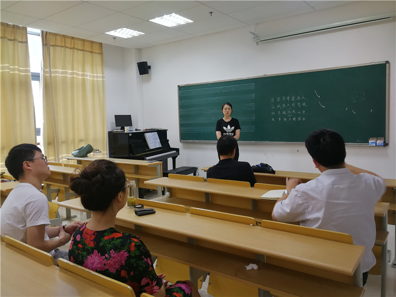 按假期前公司部署,公司江苏省第八届师范生教学基本功比赛小组成员冒着高温酷暑,为推荐组选手16音乐学师范2班的曾晓玲同学做观摩指导。此次观摩共分“两字一话”、模拟授课、专业技能展示、自弹自唱以及教资国考五项,曾晓玲同学向指导教师展示了暑期一个月以来的学习情况,每位指导教师都对其五项内容做了细致的点评,并对其下一阶段的学习提出了总体规划。