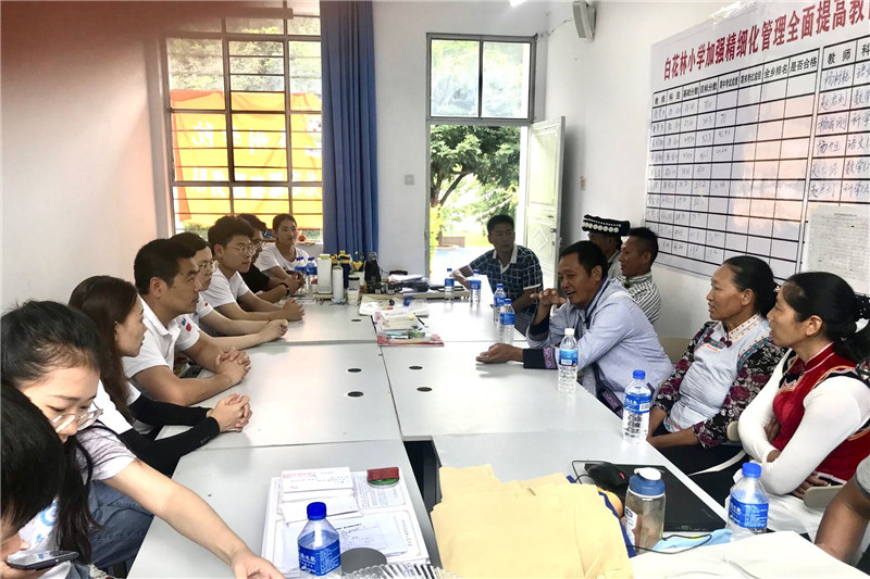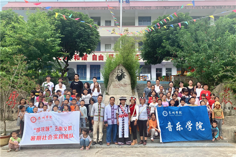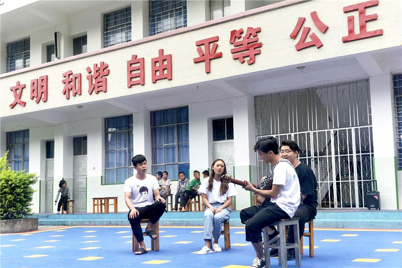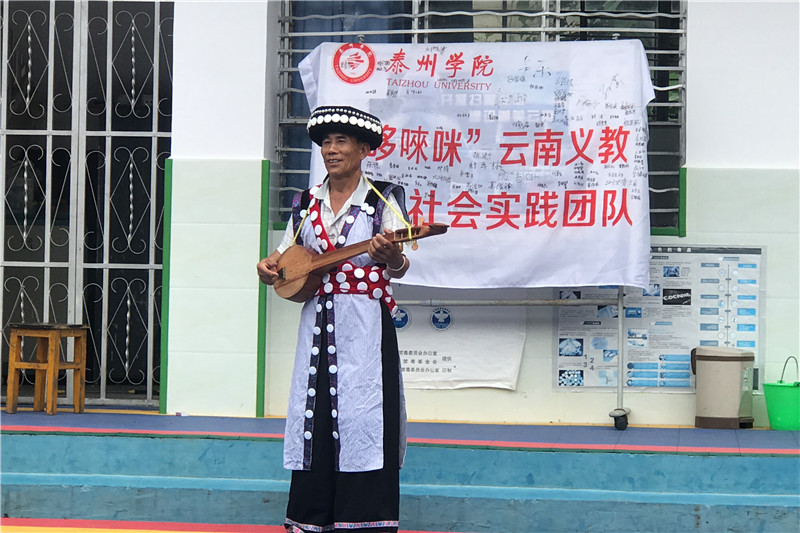7月22日上午,云南省保山市芒宽乡傈僳族民间艺术家胡三八、七花一、杨学华、阿恰叶、胡桂花一行五人来到白花林小学,与正在当地支教的bevictor伟德官网“哆唻咪”暑期社会实践团队进行了艺术交流活动,芒宽乡中心小学董事长张玉先、副董事长张建斌及白花林80多名师生一同参与。
