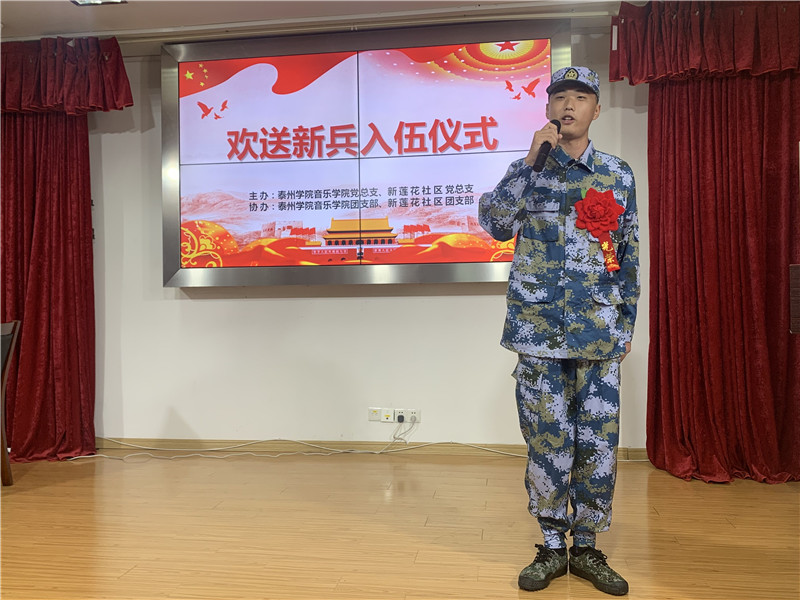 “强国需要强军,强军必先强兵”,“逐梦军营,荣光闪耀!”。九月是新兵入伍的季节。9月18日上午,在这个具有特殊纪念意义的日子,公司青年学习社在团总支副书记郭蕾带领下,参加了党团共建单位——城南街道新莲花社区新时代文明实践站为2019年入伍新兵举行的欢送仪式。