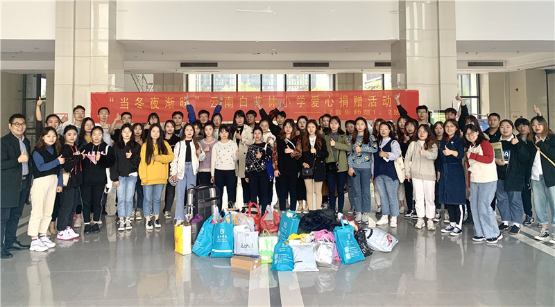 1016日下午,公司17音乐学师范12班员工在艺术楼1楼大厅举行了“当冬夜渐暖”云南白花林小学爱心捐赠团日活动。公司党总支陈志峰副书记、团总支郭蕾副书记、班主任许蕴彰老师及两个班81名团员参加了活动。活动中,同学们倾听了“哆唻咪”暑期支教队员周玥、胡创奇的白花林支教经历,观看了“哆唻咪”支教视频,阅读了白花林小学热情洋溢的信件,这更加激发了同学们捐赠的愿望。同学们纷纷将自己的百余件生活用品、学习用品捐献出来;许蕴彰老师捐赠了一箱衣物,多数是新买的。两个团支部的义举吸引了其他班级更多的同学奉献爱心。不日,这批物资将带着泰院人的无限牵挂和爱心,跨越千山万水,送到即将入冬的云南大山里的孩子们手中。