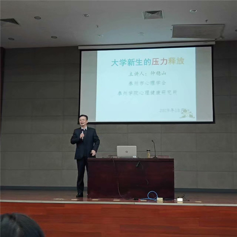 10月16日下午2:20,公司19级新生在图书馆负一楼报告厅参加了心理健康讲座“大学新生的压力释放”,公司心理咨询师仲稳山教授为大家开展此次讲座,心理辅导员丁加琪和119位大一新生参加了此次活动。