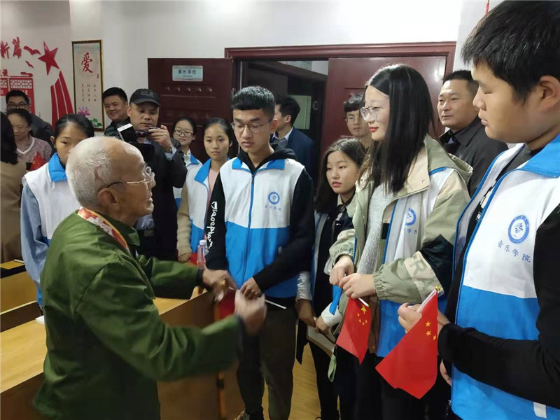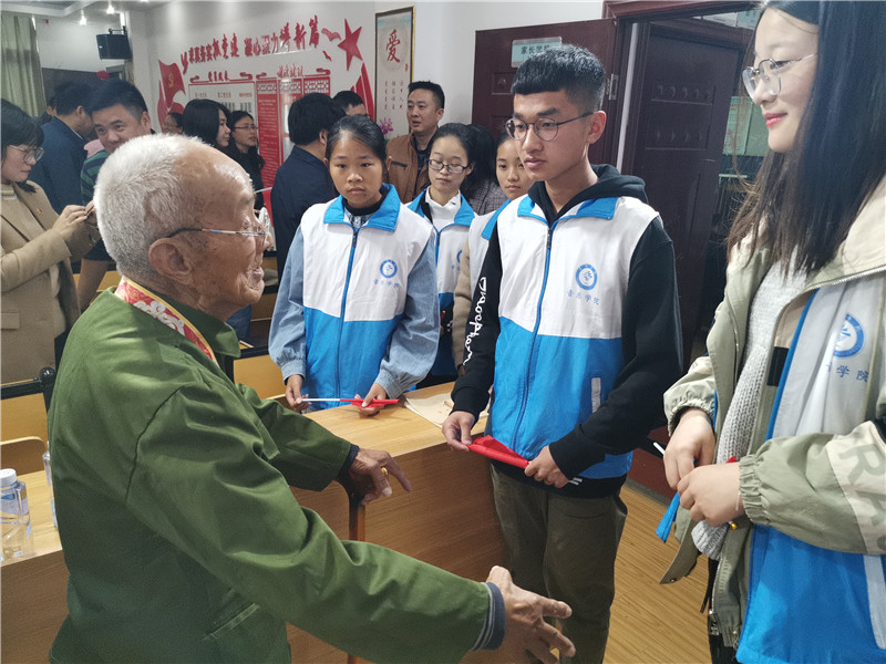 在向先进学过程中,党员教师和同学们围坐在“庆祝中华人民共和国成立70周年纪念章”获得者,91岁高龄的王恒生老英雄身边,听他讲述自己的革命经历。老人朴实而亲切的话语让每个师生为之动容。老英雄希望大家要永远牢记悲壮的革命历史和优良的革命传统,要不断传承伟大的革命精神;他勉励青年们要珍惜当下来之不易的幸福生活,一定要好好学习、练就本领,将来为祖国的强盛、为人民的幸福贡献自己的力量。随后,公司党总支李中明书记给王恒生发放聘书,聘请其指导和参与公司关工委工作,为引导青年师生树立正确的世界观、人生观、价值观,继承和发扬光荣革命传统,养成高尚的思想品质和良好的道德情操发光发热。这也是公司党总支将主题教育活动落地生根的重要举措之一。