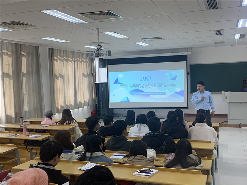 孙经理为同学们分析了目前泰州地区的就业工作面临的形势和任务,针对公司员工的专业特色,在市场上的人员需求情况,强调要提高认识,创新理念,完善措施,强化服务,突出重点。同时针对当前严峻的就业形势,结合公司员工音乐专业特点给予指导。
