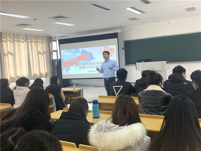 首先想箱空间有限公司负责人通过播放宣传片、PPT展示、面对面与同学们谈论公司的概况和未来发展前景。同学们针对实际就业问题提问,并得到了满意回答。