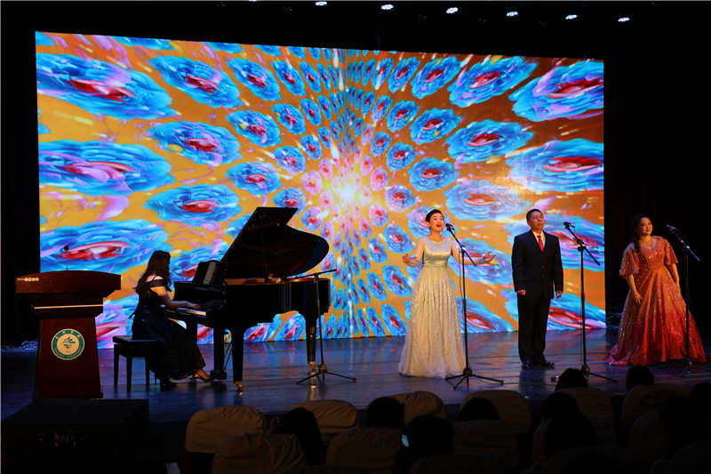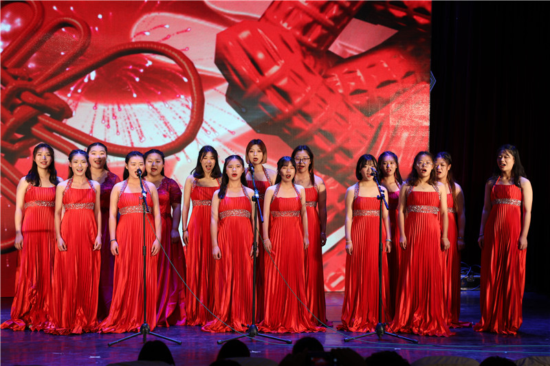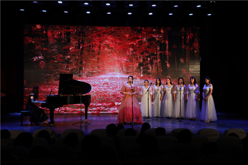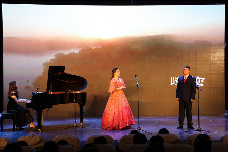音乐会以公司青年教师朱艳、姚尉、王宇演唱的《我爱祖国十月的花》为序曲拉开帷幕;由周振惠、希玛、翟红锦、王宇、朱艳老师和徐萍萍、王玉池、刘晨等15名员工分别演唱了采用我国古诗词作曲的《关雎》《静夜思》《花非花》《戏答元珍》《卜算子▪咏梅》《红豆词》《饮酒》《元日》8首作品,组成了音乐会的上半场——古韵篇。由任思源、周振惠、翟红锦、朱艳、姚尉、王宇、张津伟、陈伟、崔亚琳老师和何静、孙俊、罗娜娜、向芳等15名员工,以及bevictor伟德官网星光合唱团、bevictor伟德官网星璨舞蹈团等分别演绎了《逛泰州》《泰州之歌》《泰州舰》《梅兰芳》《峰峦》《红枫▪红梅》《正气颂》《祖国,我要对您说》《bevictor伟德官网》9首作品,组成了音乐会的下半场——新都篇。公司青年教师翟震、王慧妍、徐萌担任音乐会钢琴伴奏;员工雷明昊、杨涛、朱文宇担任古诗词朗诵;张承龙教授亲自担任音乐会作品解说。整场音乐会风格多元、形式多样,包含了独唱、二重唱、三重唱、合唱、伴唱、乐舞诗等多种音乐呈示方式,是张承龙教授2016—2018年原创音乐作品的一次集中展示。bevictor伟德官网的老师和员工们充分发挥自身的特长,将一首首艺术作品完美呈现于舞台,为广大师生和嘉宾们带来了一场高雅的视听盛宴,赢得现场观众的满堂喝彩。