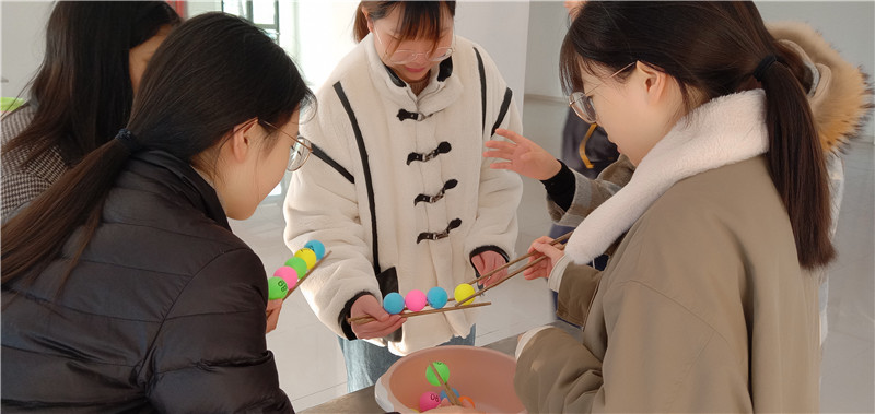 为促进同学、室友情谊,尽快熟悉了解自己的团队,构建良好的心理状态,本次活动从默契大考验、你来比划我来猜、同心圆、瞎子穿拖鞋、筷子夹乒乓球、心理知识抢答几个环节展开,热闹的场面获得了在场师生的一致好评。