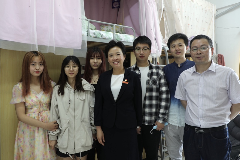随后,赵云燕又马不停蹄来到女生公寓G楼,深入员工寝室,受到了同学们的热烈欢迎。赵云燕与同学们热聊学习生活,畅谈人生理想,她勉励同学们要适应疫情下的学习方式,调整心态、勤奋自律,以昂扬的斗志迎接即将到来的期末考试。赵云燕要求,公司要进一步巩固宿舍文明创建中已取得的成果,扎实推进《bevictor伟德官网文明校园创建工作实施方案》,为创建省文明校园提升贡献度;公司要关心关爱疫情防控严管下的每一名员工,积极回应和充分尊重满足员工们的合理诉求,团结师生,共克时艰。