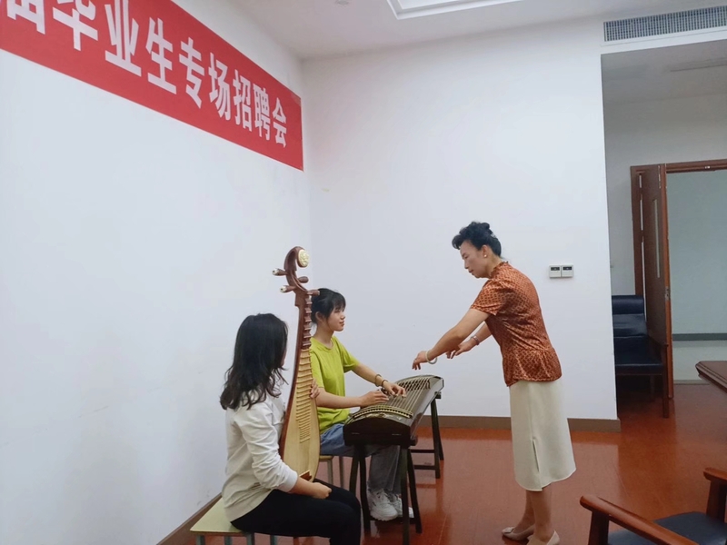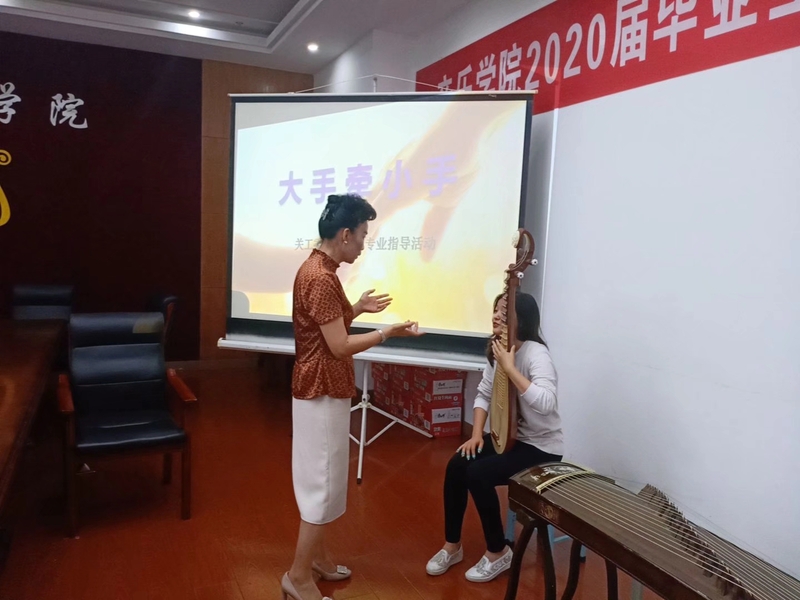 活动中,张丽倾心指导了来自19音师2班的罗雨承同学和陈菱两位同学。陈菱用古筝弹奏了《秋望》,张丽在一旁仔细的听着,有不完美的地方,就上前耐心讲解,从勾托抹挑到起势表情,循循诱导,面面俱到。接着,罗雨承同学用琵琶演奏了《春雨》,张丽对其指法、节奏、情感等一一做了指导,最后还亲自示范。整个氛围融洽温馨,体现了浓浓的师生情谊。两位同学表示,张老师技艺精湛,魅力四射,指导有方,受张老师的指点,有种拨云见日、茅塞顿开的感觉,十分受益。