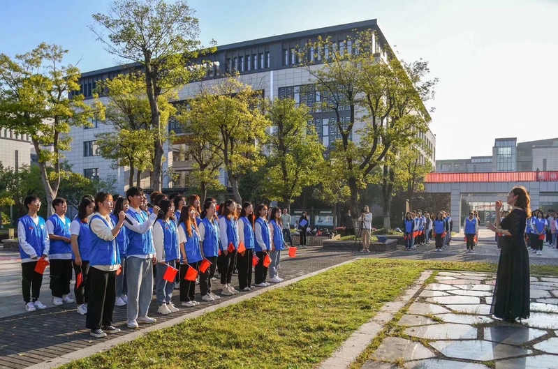 随后,在龚静慧的指挥下,公司肖青青、范浩野带领美院学子,挥舞着手中的红旗,饱含热情、引吭高歌《我和我的祖国》,歌声荡漾在泰院的每个角落,也荡漾在我们泰院学子的心中。精彩的合唱将活动推向高潮,现场气氛热烈、掌声如雷。