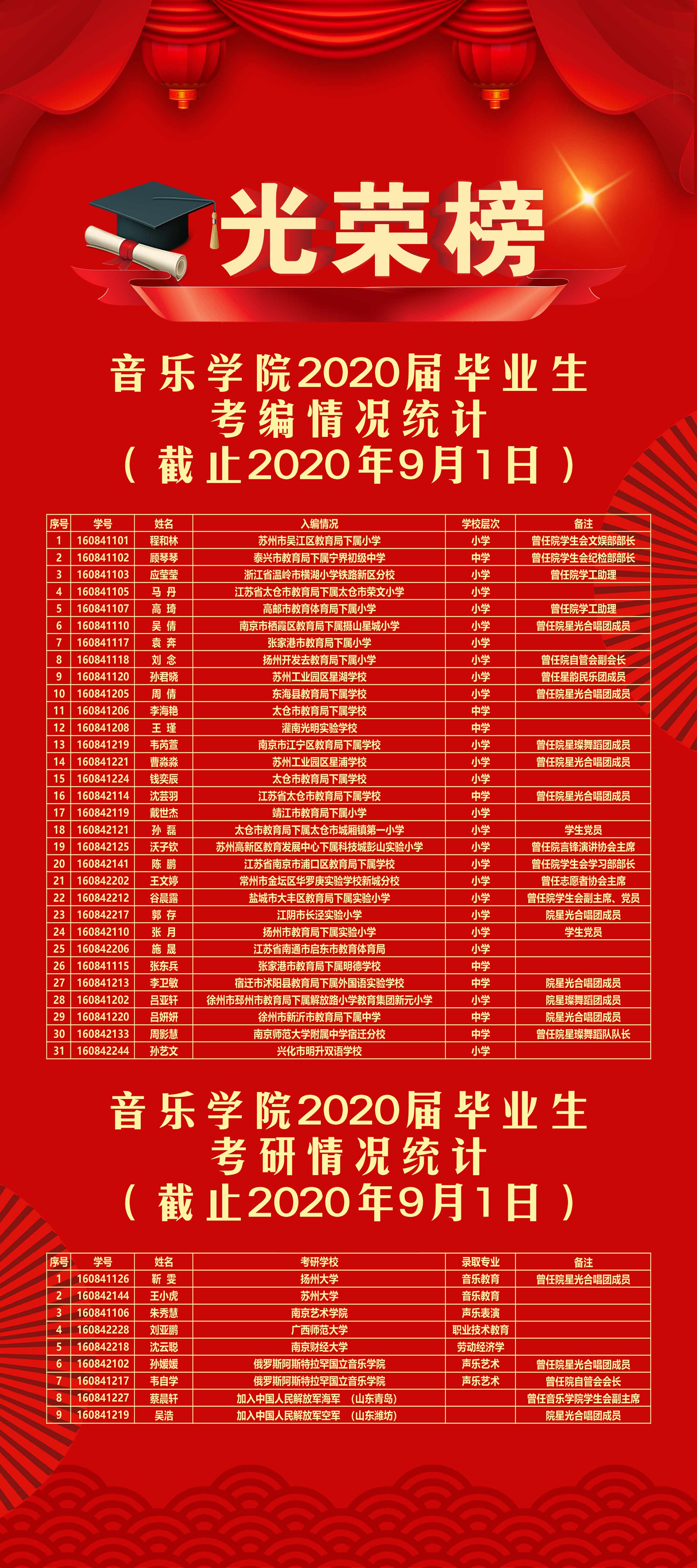 1 | 160841126 | 靳 雯 | 扬州大学 | 音乐教育 | 曾任院星光合唱团成员 |