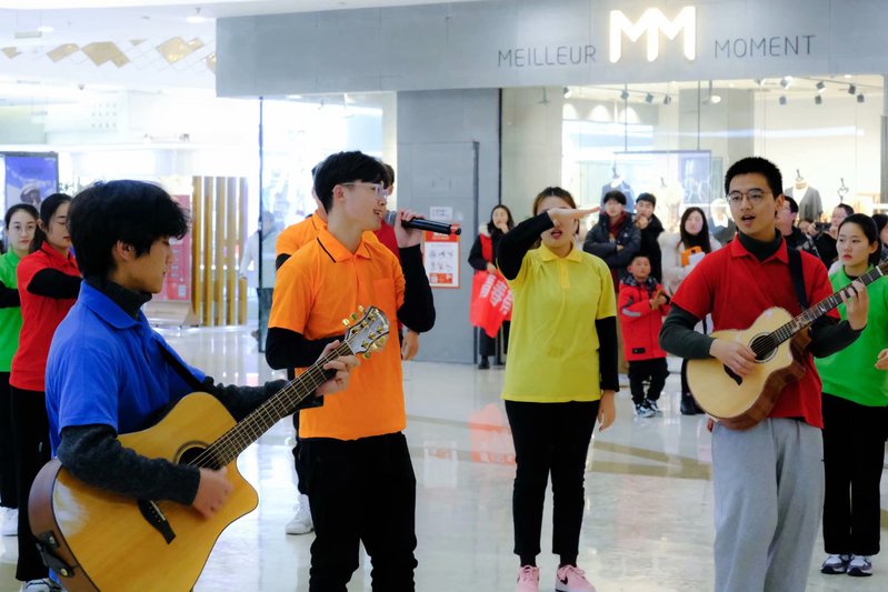 寒冷刺透骨髓,阳光依然明媚,寒冷与温暖交织,12月19日晚,泰州市万达广场内闪现着充满热情活力舞动的身影,吸引了众多来往的人驻足观看。此次“青春有我,疫路先行”最亮的光线快闪活动由18音师2班组织策划,意在丰富老员工课余文化生活,展示老员工的精神面貌、青春风采,传递正能量。新颖的形式,优美的手舞,美妙的歌声吸引广大群众围观拍照,产生了良好的宣传效果,展示了公司学子奋发有为、积极向上的青春风采。