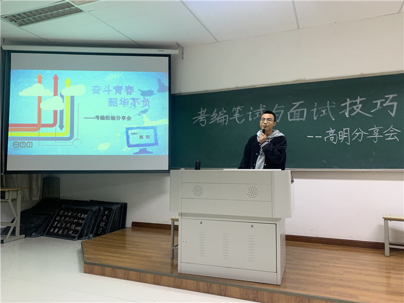 20211020日,院学工办主任郭蕾邀请了已经毕业的16高明学长,在教学楼A1408为大家分享考编经验,分享会上高明从考情分析笔试内容面试内容技能项目四个方面为学弟学妹们进行详细的讲解分析每个地区的招录人数以及报考人数笔试的考试科目主要是学科知识,教综,公基,是包围着在校学习的课程,比如中西方音乐史。在面试中,会考核教唱与曲式欣赏,每一个环节都重要。在技能项目中,钢琴即兴伴奏,声乐二器舞蹈,这些都是必考的技能考试。