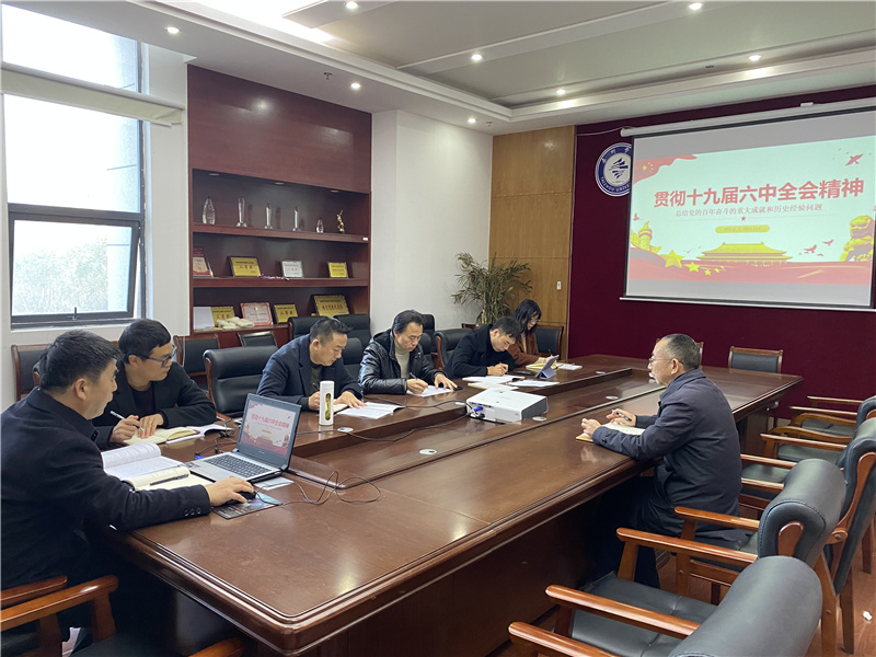 公司党总支书记刘江元做了《贯彻十九届六中全会精神 总结党的百年奋斗重大成绩和历史经验》领学报告,他分别从十九届六中全会会议议程、中国共产党百年奋斗历史意义和历史经验、十八大以来党和国家事业取得的历史性成就和深悟召开十九届六中全会的三重内涵四个方面做了全面梳理与报告。