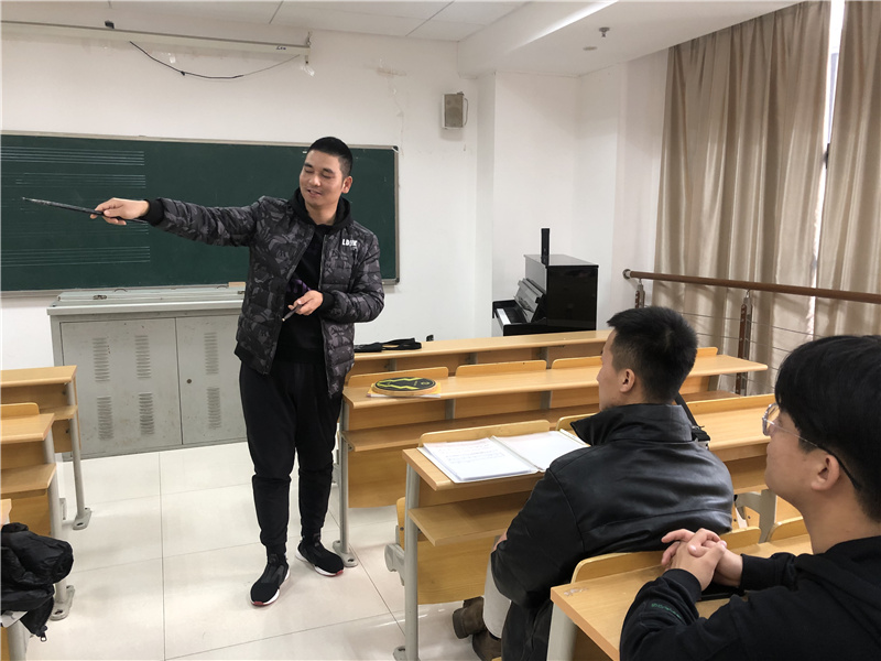 12月10日下午,“实习+就业”双轮驱动“九拍班”在艺术楼2409为班级同学开展了第一节课《架子鼓教学法》。
