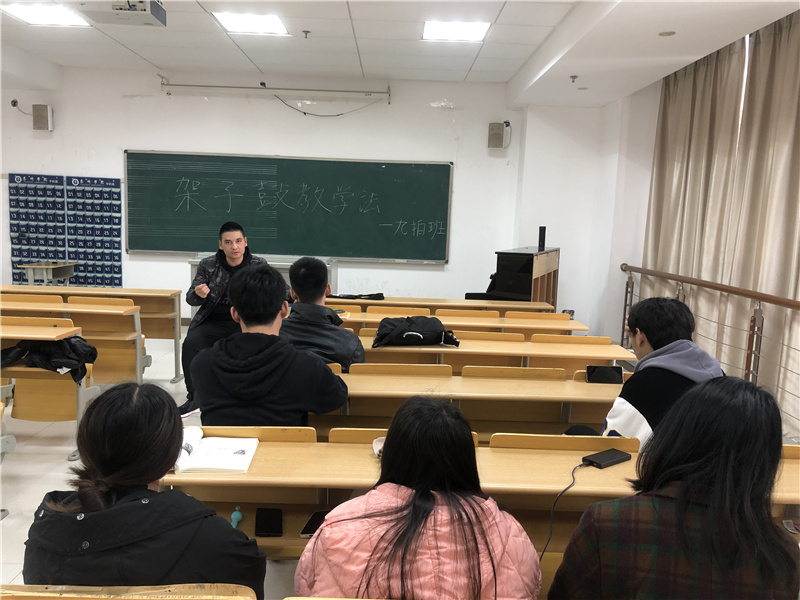 课上,“九拍班”黄峰老师与大家分享了架子鼓的基础知识,包括架子鼓的来源、发展历史和现阶段市场的需求等等。亲自示范架子鼓的教学技巧,同时强调如何在课堂上契合小朋友的心理,让小朋友爱上这个乐器等。“九拍班”王慧老师用亲身经历提醒大家在大学期间,一定要充实自己,利用好空闲时间,多学习一些技能。