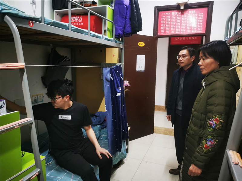 12月23日公司党总支副书记陈小梅 、院关工委主任姚亚中到21级男生宿舍看望同学们。