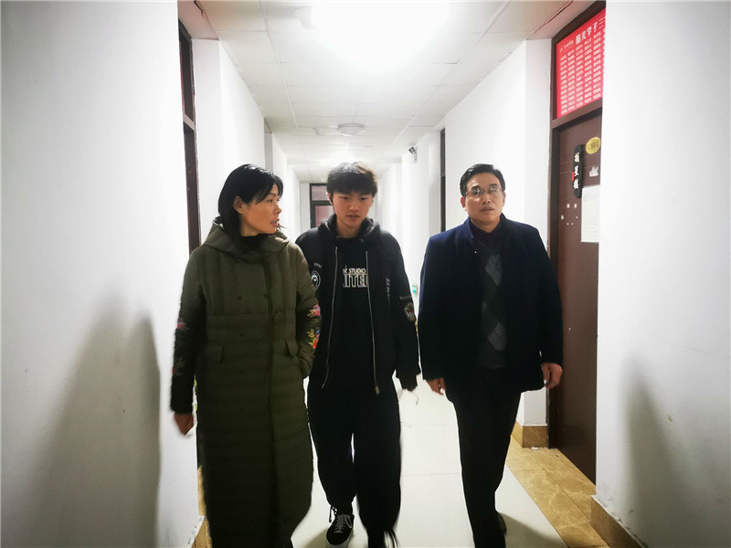 姚亚中深切问候同学们期末学习生活是否顺利,宿舍设施有无缺陷,有无学习压力和心理压力等。经过一番交谈同学们很感激姚老师的问候并表示学习生活一切正常。