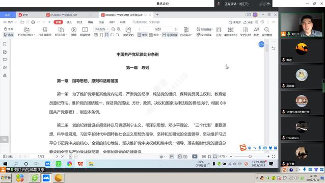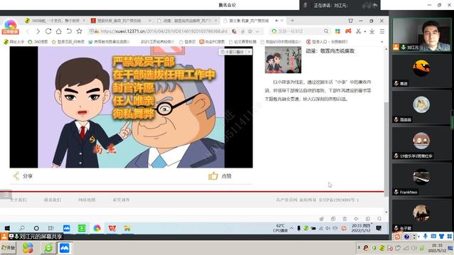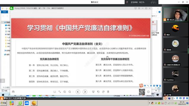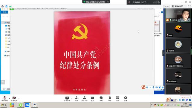 5月12日晚19:30,公司党总支书记刘江元通过腾讯会议为全体师生党员上廉政教育专题党课。