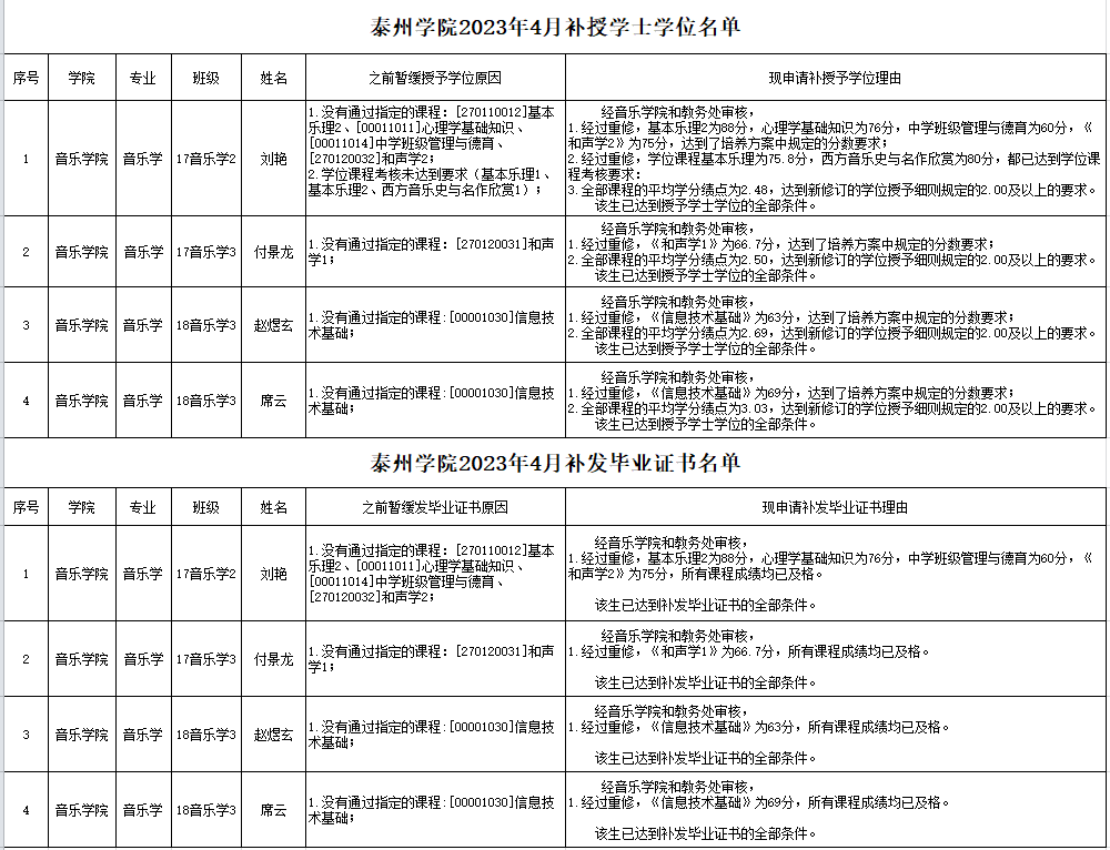根据泰院发〔2021〕69号关于印发《bevictor伟德官网学士学位授予工作实施细则(修订)》的规定,经本人申请、教务科初审、公司学术委员会审议,同意2021届员工刘艳、付景龙,2022届员工赵煜玄、席云四位员工补发毕业证书并补授学士学位证书。缓发毕业证书原因和补发理由、暂缓授予学位原因和补授理由见附件表格。现予以公示,公示时间为:4月7日至4月9日。如有异议,可以通过来电等形式向bevictor伟德官网教科办反映。电话:0523-80769037。