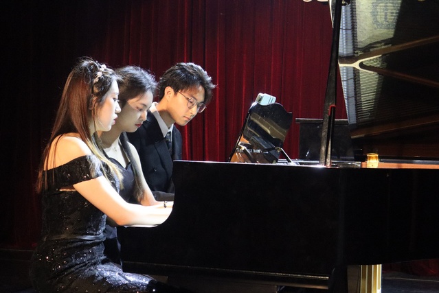 一首舒伯特经典作品《音乐瞬间》,为本场音乐会拉开帷幕。整场音乐会曲目丰富,涵盖古典主义时期、浪漫主义时期等等,展现了各个时代钢琴作品的风格特点,如门德尔松的《无词歌》、圣桑《热情的快板》、神秘而热情的舒曼《C大调阿拉伯风格曲》、小巧而迷人的《舒伯特即兴曲》、肖邦的《g小调第一叙事曲》等。为出色地完成本场演出,员工们刻苦练琴,老师也不断讲解和打磨作品细节,在解决钢琴技术要点的同时,力求展现出作曲家们在音符背后所表达的层次与情感。钢琴作为乐器之王,其艺术表演形式也从不局限于一种,本场音乐会为此呈现了独奏、四手联弹、六手联弹、双钢琴合奏等多种表演形式。演奏者们用娴熟的技巧、丰富的情感顺利完成了此次演出,获得观众们一致好评。