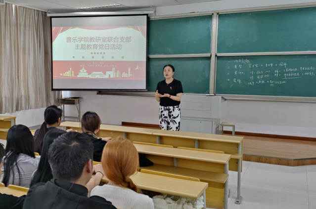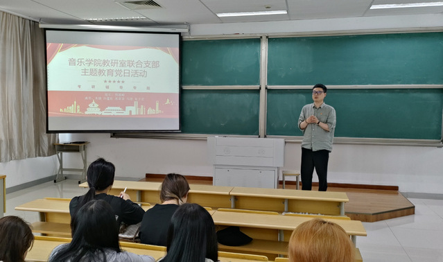 6月14日下午两点半,教研室联合支部主题教育党日活动在A1307召开,20级音乐学员工、全体支部党员出席活动。