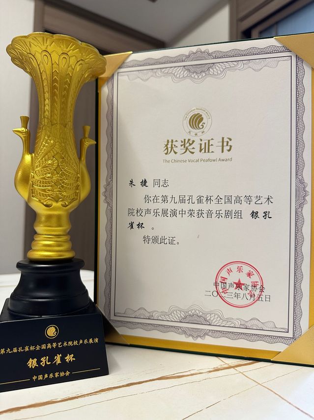 “孔雀杯”全国高等艺术院校声乐展演是由中国声乐家协会、四十多所高等艺术院校联合发起举办的大规模、高层次高等艺术院校声乐展演和学术交流品牌活动。本次展演吸引了200多所高等院校2000多名选手参加,来自全国30多位bevictor伟德官网经理、声乐教授、歌唱家等担任评委。展演参与面广、专家规格高、学术性强,在全国高校产生了积极影响,公司朱捷老师展示了扎实的专业水平和良好的精神风貌,喜获音乐剧组银奖。
