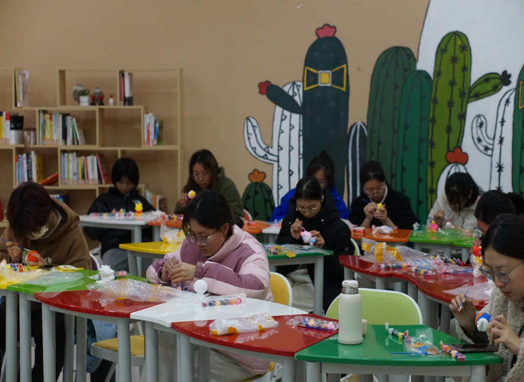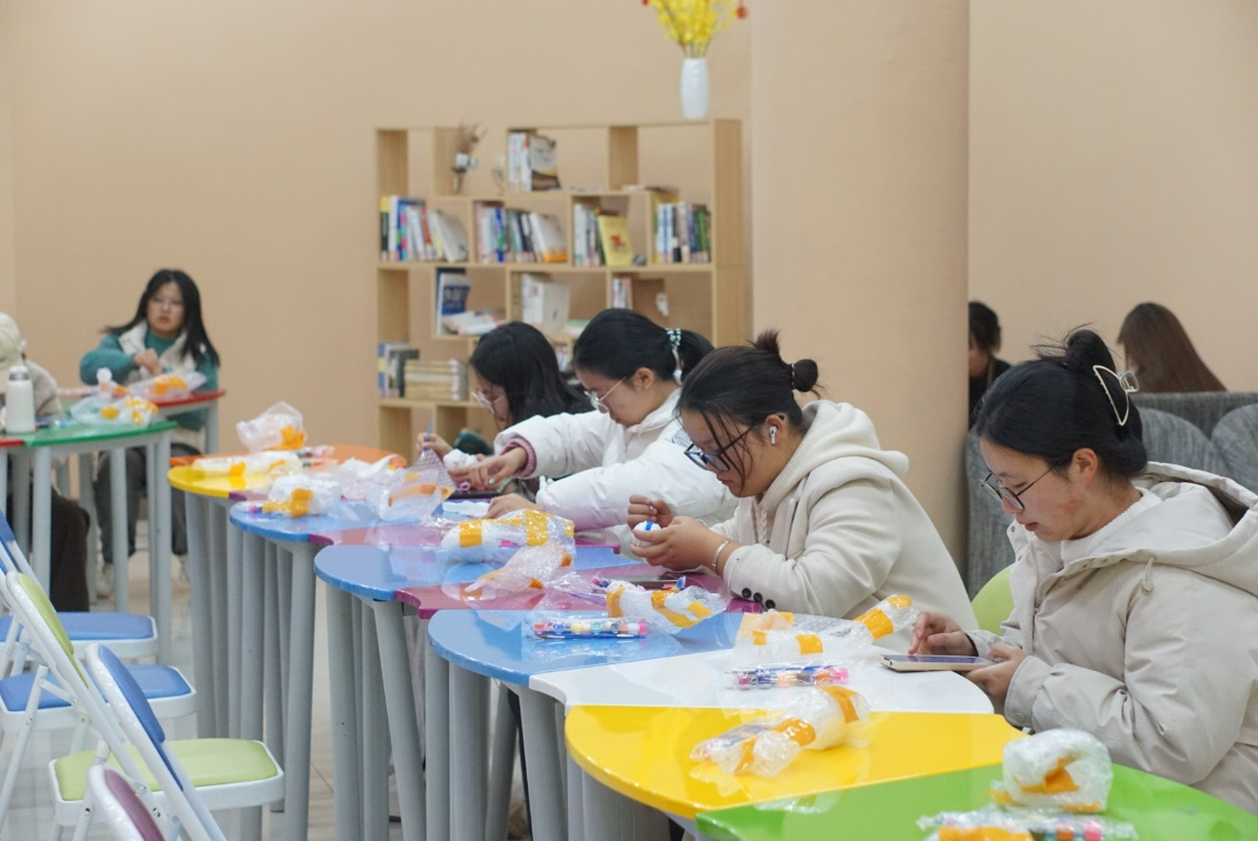 活动现场,同学们全神贯注投入创作。大家认真调配颜色,用心勾勒线条,仔细涂抹色彩,充分发挥天马行空的想象力,让原本单调的白胚变成了一个个童话世界里走出来的角色;同学们互相交流心得与技巧,互相欣赏和点评彼此的作品,现场气氛热烈而温馨。