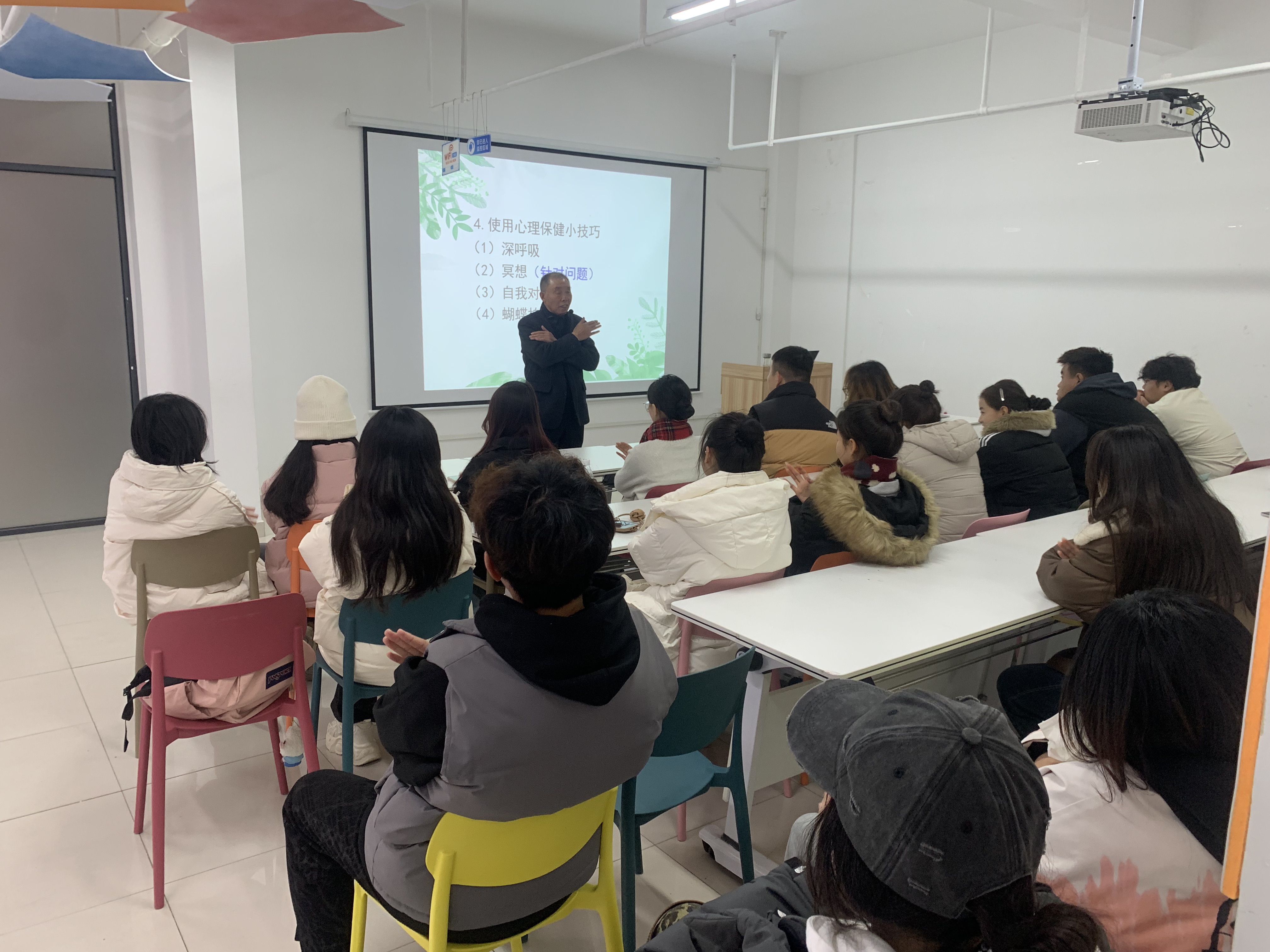 李如齐围绕“老员工心理健康问题的识别与处理”,从认知特征、情绪表现、自我意识、行为状态、环境适应、人格正常六个方面讲解如何识别身边可能存在心理健康问题的同学,通过图片趣味压力测试帮助同学们快速的自测个人压力水平,并利用积极心理学的观点引导其正确认识心理健康问题,学会如何在日常生活中运用乐观的心态去面对挑战。