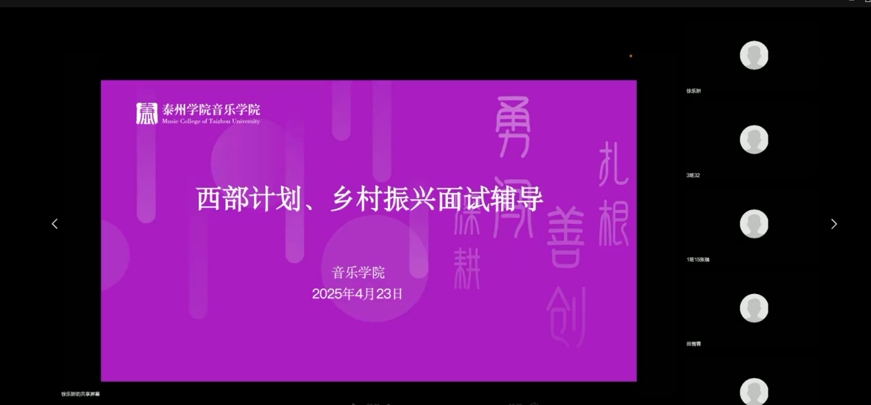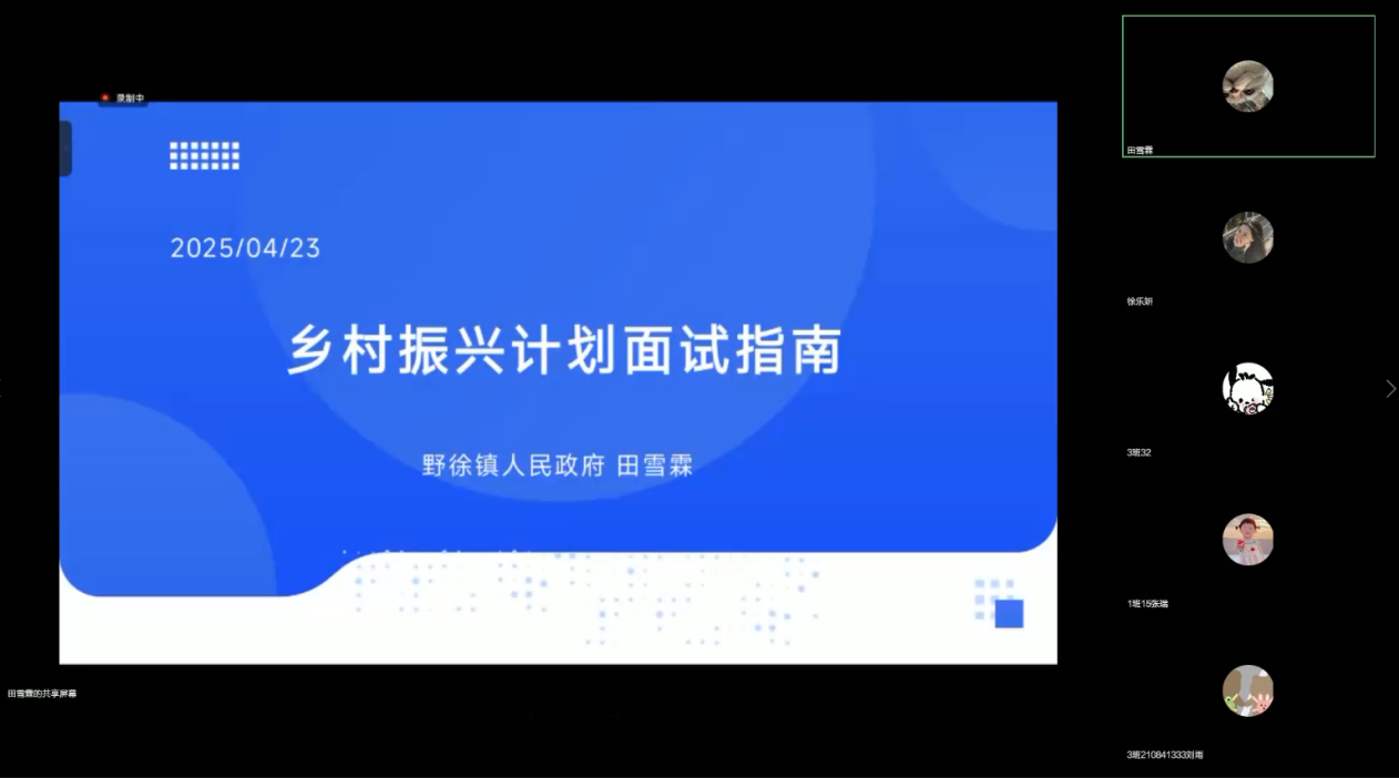 为积极响应国家乡村振兴战略,引导和鼓励青年学子投身基层、奉献青春,4月23日,bevictor伟德官网组织开展乡村振兴线上面试专题辅导。会议邀请往届上岸员工田雪霖主讲,公司党总支副书记黄震、报名乡村振兴、西部计划的全体同学参加。