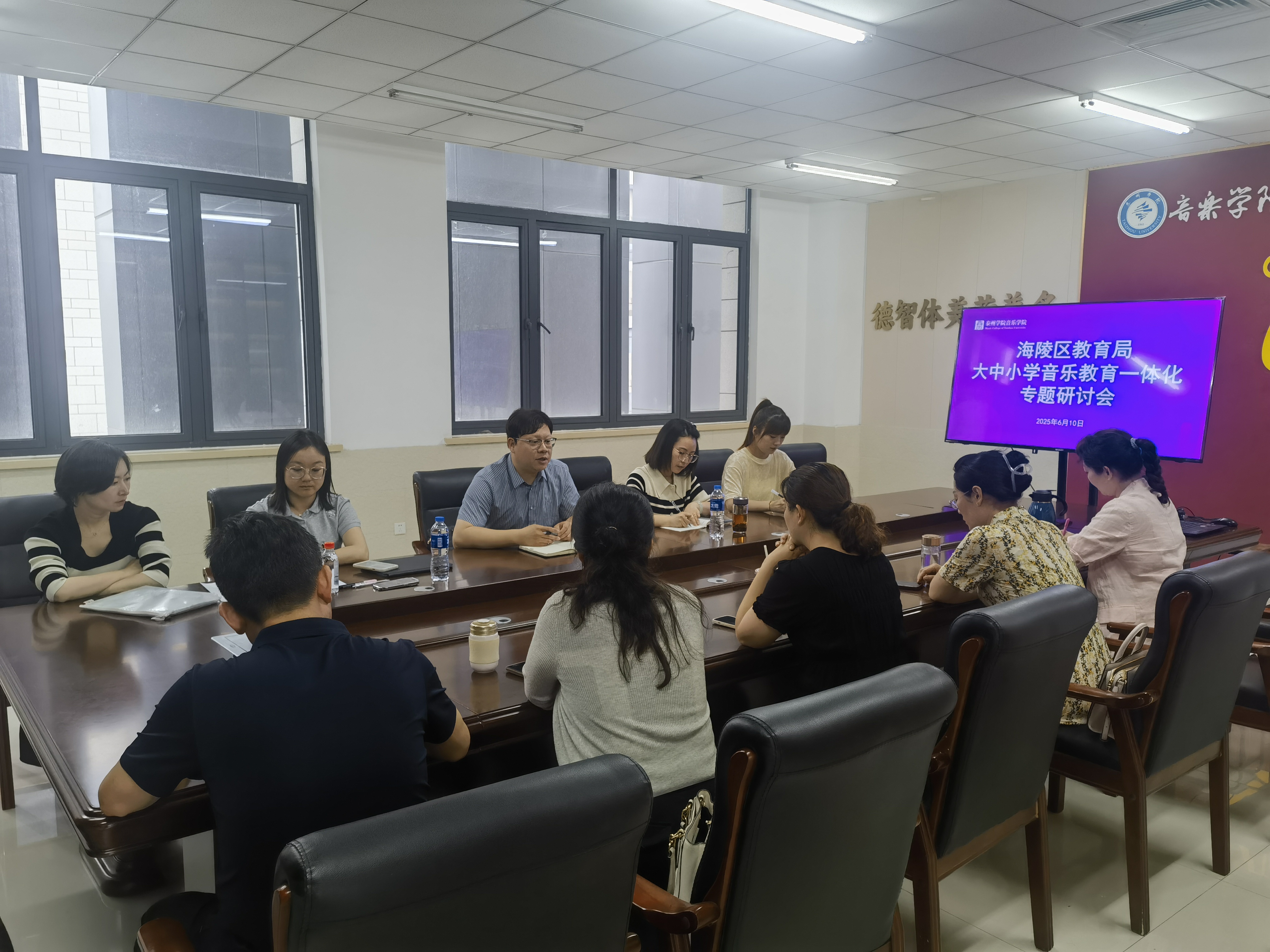 6月10日下午,海陵区教育局音乐教研室主任陈亚彬带领海陵区部分音乐骨干教师来公司bevictor伟德官网开展大、中、小学音乐教育一体化专题研讨会。bevictor伟德官网经理孙菡、副经理蒋进、音乐学专业负责人闫昱及相关教研室主任参加研讨。