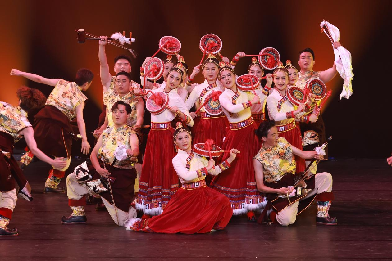 《边疆儿女心向党》以藏族舞蹈为载体,通过高原人民载歌载舞的欢庆场景,艺术化地呈现了边疆地区在党的领导下发生的巨大变化。舞蹈既保留了藏族文化的独特魅力,又注入“中华民族一家亲”的深刻主题,表达了边疆儿女对党的感恩之情和对祖国的赤诚热爱。