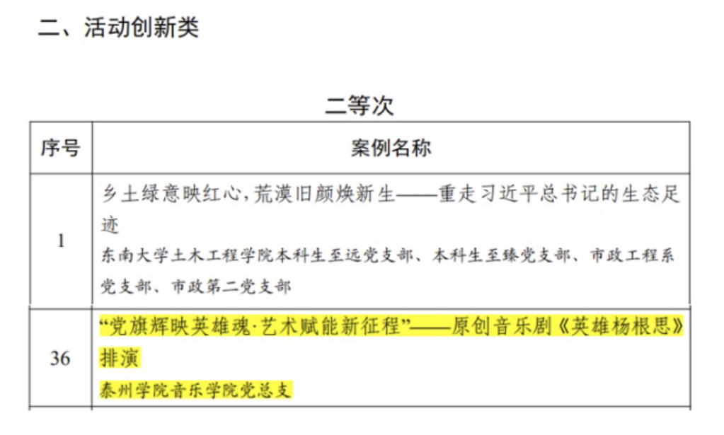 近日,江苏省委教育工委公布了《2023—2024年度江苏高公司党建工作创新案例名单》,公司党总支申报的案例《“党旗辉映英雄魂·艺术赋能新征程”——原创音乐剧<英雄杨根思>排演》获得活动创新类案例二等次。